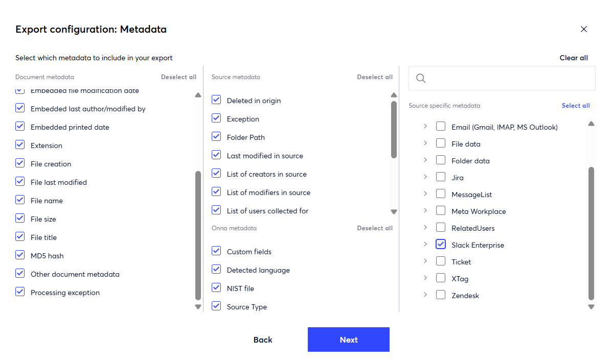 Exported Slack data is converted into a comprehensive review-friendly file with chosen metadata. All native formats are preserved.