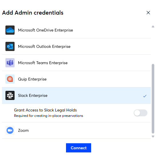 Step 1 is preserving Slack data with Onna connecting directly to the party’s Slack workspace.